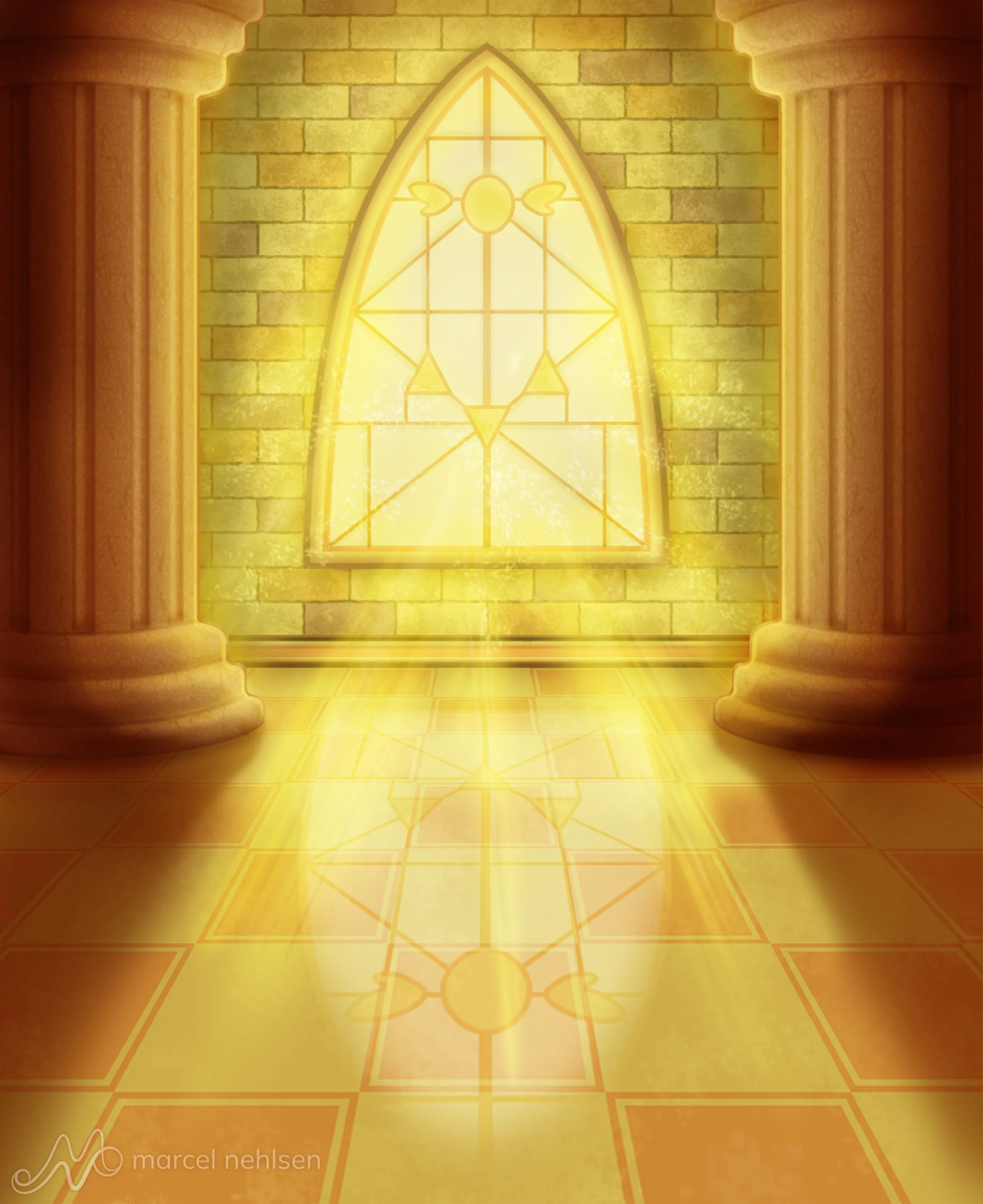 This Undertale fan art shows a bright hallway in a castle. It depicts a tranquil moment before a dramatic scene in the game. Undertale has a simple pixelated style, so I took many liberties with the missing details. It was also a unique challenge to work with this limited color scheme.